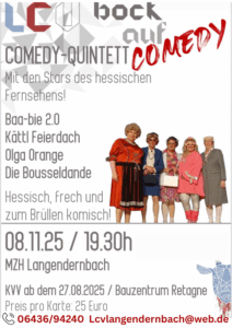 Ein Abend voller Witz, Charme und typisch hessischem Humor erwartet euch – mit einzigartigen Comedy-Acts, die unterschiedlicher nicht sein könnten, aber eines gemeinsam haben: